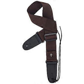 Dark Brown Cotton Guitar Strap with Pick Pocket, Adjustable Woven Design, PU Leather Ends