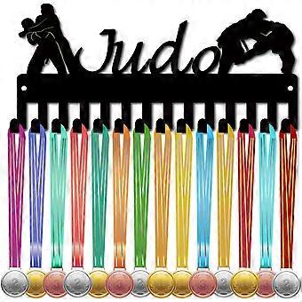 Judo Medal Holder Race Medal Hanger Display Black Rack Frame with Hooks Small Athlete Race Hanging Awards Iron Wall Mount Decor Over 14+ Medals for Sp