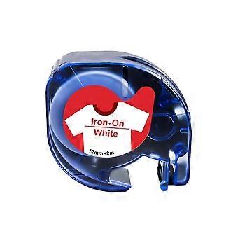 Fabric Iron On Label Tape 12mm Red on White for LT100H LT100T QX50, Durable Washable 2m Roll