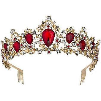 Baroque Vintage Gold Crystal Tiara With Combs Rhinestone Diadem Headpiece Wedding Hair Accessory Gold Red