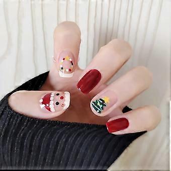 Christmas Press On Nails Set Short Square Red and Green Santa Claus Wreath Design Reusable Holiday Fake Nails for Women