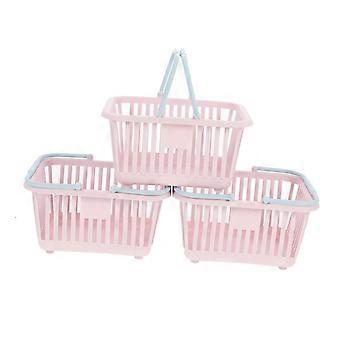 Small Plastic Shopping Basket Set Pink – Durable Home Storage for Toys, Fruits and Groceries