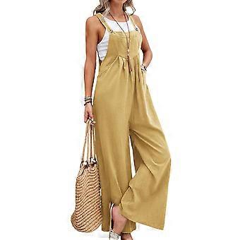 Women's Wide Leg Summer Jumpsuit with Pockets Sleeveless Adjustable Straps XXL Yellow Boho