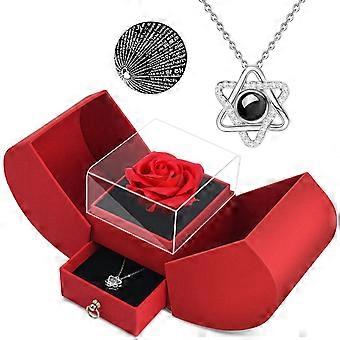 Eternal Rose Necklace with 100 Languages Love Message in Elegant Heart Box, Preserved Real Rose Gift Set for Women