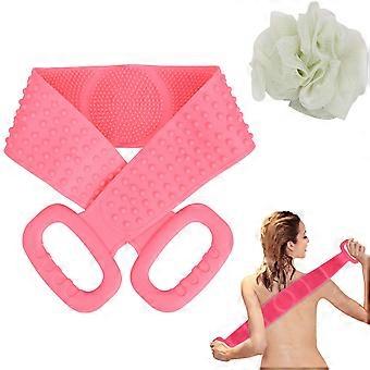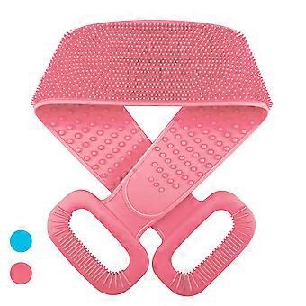 Silicone Back Scrubber for Shower with DoubleSided Exfoliation and Extended Reach, Pink