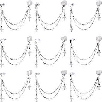 12Pcs 304 Stainless Steel Cuff Earrings with Cable Chains Brass Earring Finding and Plastic Ear Nuts Stainless Steel Color 102mm