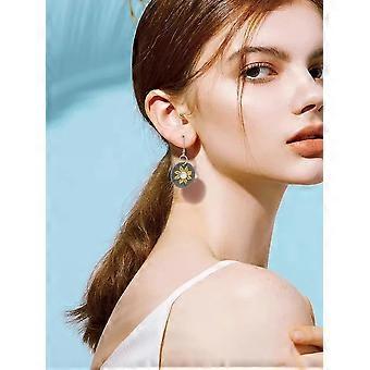 1 Pair Alloy Sunflower Dangle Earrings Flat Round with Flower Dainty Earrings Multi-color Jewelry Decoration for Women Birthday Festival Elegant Gifts