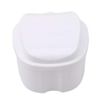 Denture Case with Hygienic Strainer, Travel Denture Cup Bath Box, White Retainer Cleaning Container