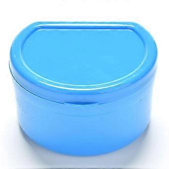 Denture Cleaning Case with Builtin Strainer Basket, Travel Retainer Soaking Container Blue