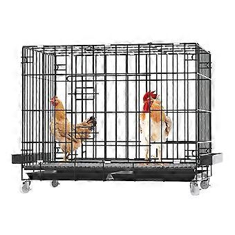 Metal Chicken Coop with Wheels for Hens and Rabbits, Easy Egg Access, Removable Cleaning Tray, 70x50x60cm