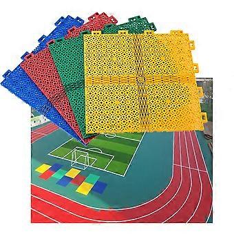 25cm PP Modular Interlocking Floor Tiles, Fast Drainage NonSlip Outdoor Sports Court Mats, Yellow and Blue 10PCS