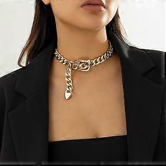 CCB Belt Buckle Choker Necklaces Cuban Punk Gothic Hip-hop Exaggerated Necklaces Golden 18.31 inch(46.5cm)