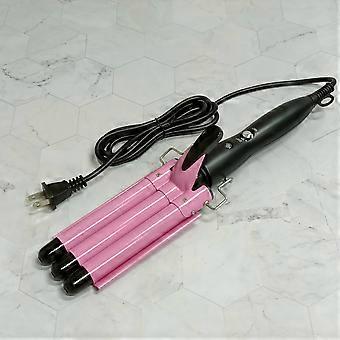 Triple Barrel 1 Inch Ceramic Hair Waver Pink with Dual Temperature Control for Beach Waves
