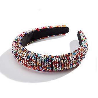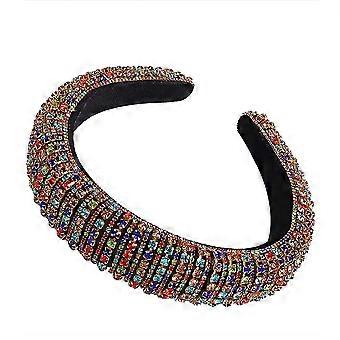 Rhinestone Gold Headband with Colorful Beads, AntiSlip Tips, Baroque Crystal Design for Women