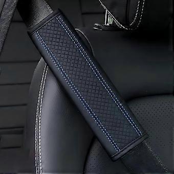 2 Pcs Leather Car Seat Belt Cover Soft Neck and Shoulder Protector Universal Fit Black Blue