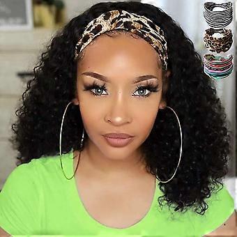 Headband Wig Human Hair 16 Inch Curly Glueless No Lace Front Wig for Black Women Natural Look