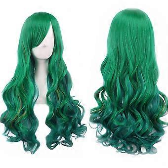 Long Green Wig with Bangs for Women St Patricks Day Curly Wavy Style Natural Hairline Design