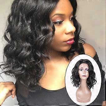 Lace Front Wig Loose Curly Bob with Baby Hair 18 Inch Heat Resistant Black Synthetic for Women