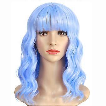 Light Blue Bob Wig with Bangs Short Wavy Synthetic Cosplay Wig for Women Shoulder Length 15inch