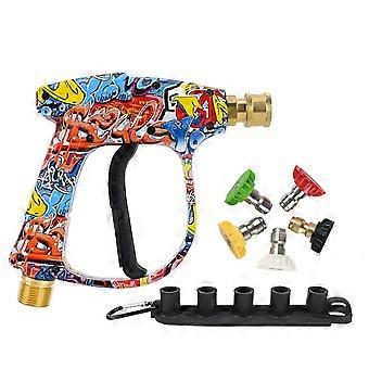 Pressure Washer Gun with 5 Adjustable Nozzles M22 Connector Brass Durable for Car and Home Cleaning
