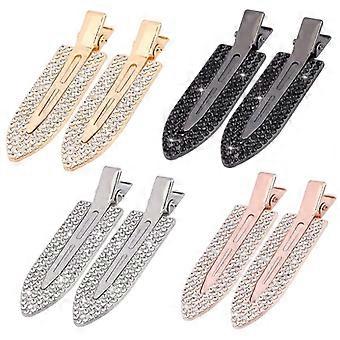 8PCS No Crease Rhinestone Hair Clips for Women, Metal Creaseless Styling Duckbill Barrettes Set, Silver Gold Black