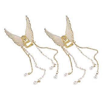 2pcs Alloy Pearl Hair Claw Clips with Angel Wings Secure Hold for Women Girls Elegant Hairstyle