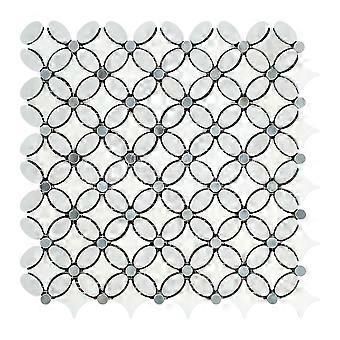 Carrara Marble Florida Flower Mosaic Tile with Blue and Gray Dots, Polished Wall Decor