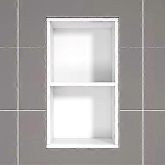 White Solid Wood Shower Niche Waterproof Bathroom Wall Shelf Organizer Drill 30x30x60CM