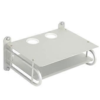 Silver Metal Double Layer WiFi Router Wall Mount Shelf with Cable Management Organizer, Large Size