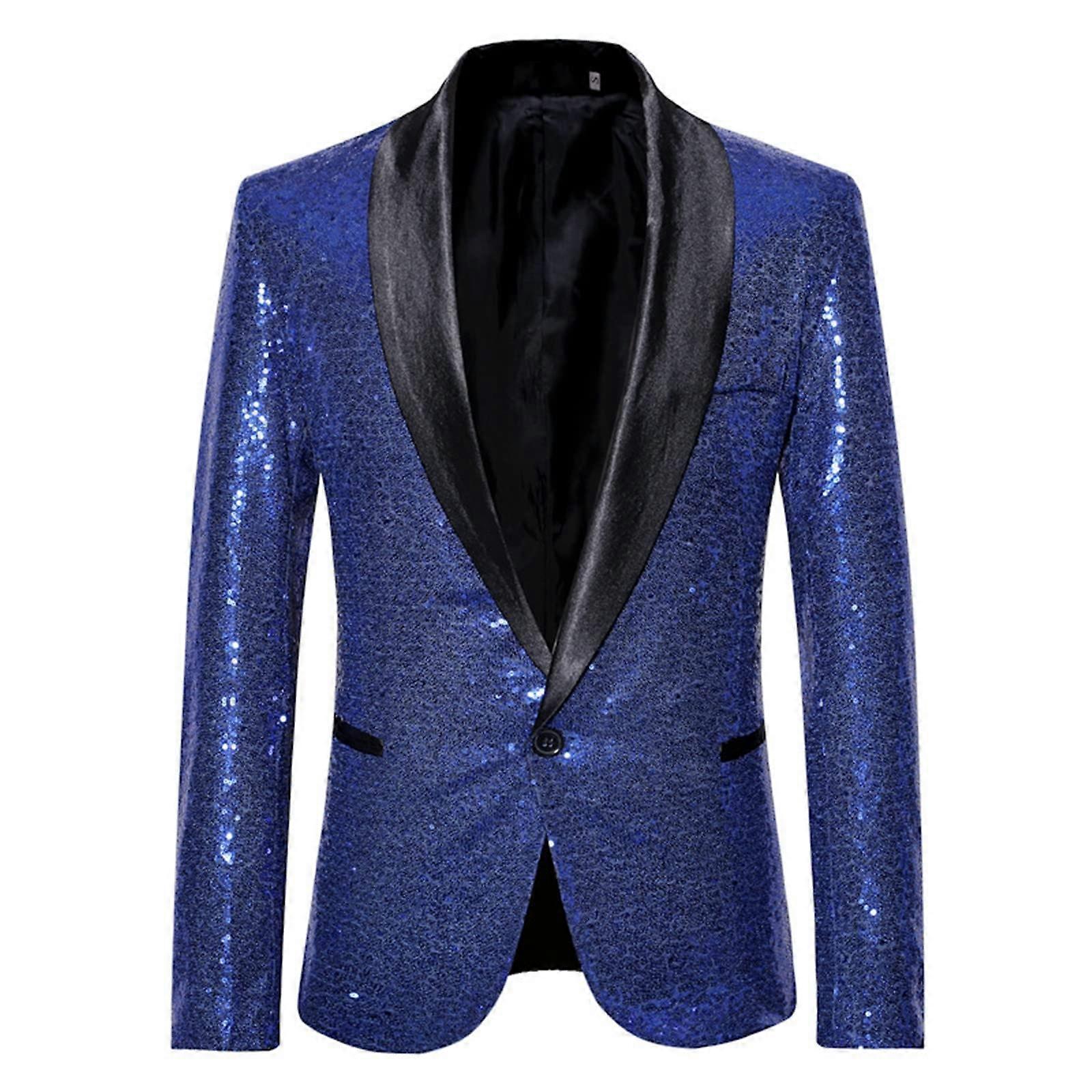 Sequin Jacket Men's Tuxedo Blazer Dark Blue, Gold Glitter Sequins, Size S
