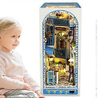 3D Wooden Puzzle BookNook Bookshelf Insert Decor Alley Bookend Model Church With LED Light English Manual