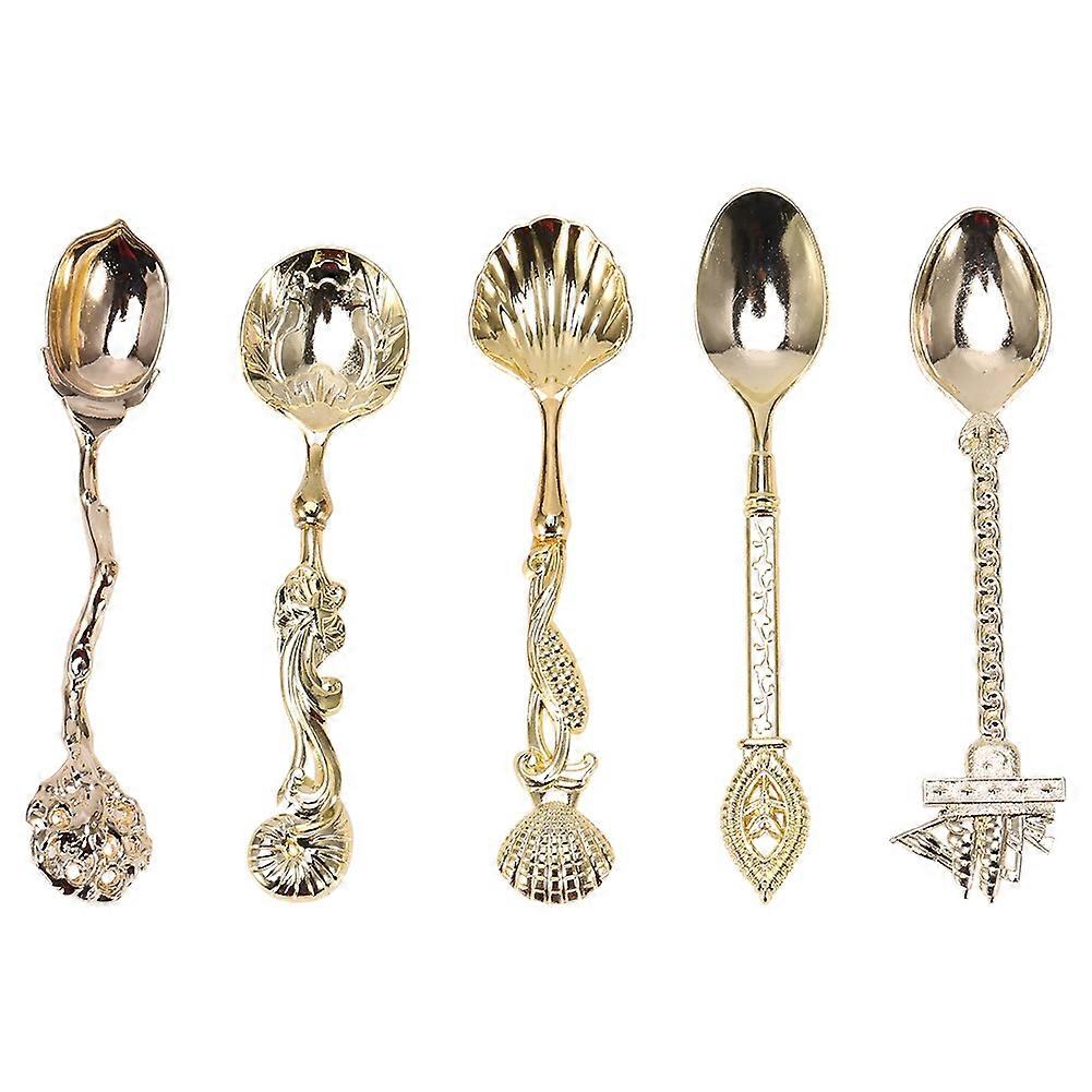 Vintage Royal Style Metal Mini Dessert Spoons Set of 6, Carved Kitchen Dining Bar Flatware, Silver Stainless Steel