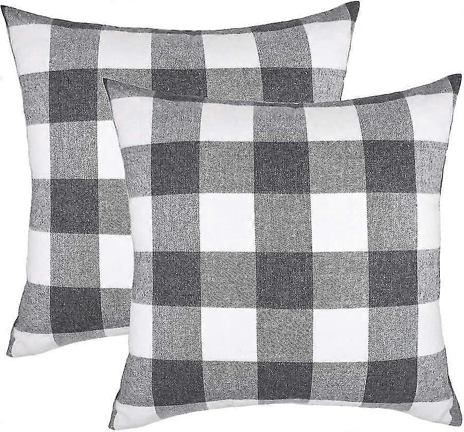 Set Of 2 Che Plaid Throw Pillow Covers Cushion Case For Sofa Grey And White, 16 X 16 Inches