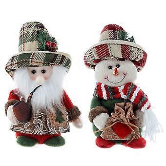 Set of 2 Handcrafted Santa Claus and Snowman Plush Puppets with Vintage Checkered Figures for Christmas Desktop Decoration