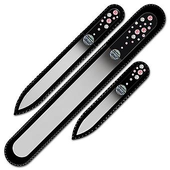 Set of 3 Black Crystal Nail Files with crystals WB-BMS - Light Rose - Crystal