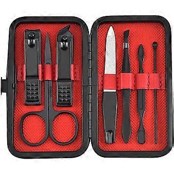 Nail Clipper Set 7 Piece Stainless Steel Manicure Kit with Scissors and Nail File, Foldable Black