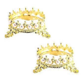 Golden Crown Nail Art Brush Holder with Pearl Decoration, 2PCS Metal Tool Organizer for Salon and Home