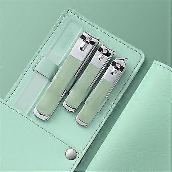 Nail Clippers Set Carbon Steel Manicure Kit with Leather Case Light Green for Precise Trimming
