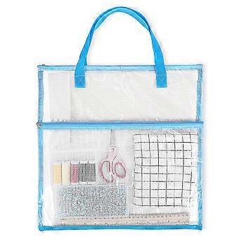Mesh Project Bag with Clear View Storage and Dual Pockets, Large Craft Organizer for Sewing and Embroidery