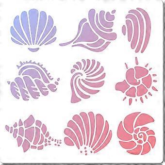 Shell Stencil Conch Template Stencil 18x18cm Plastic Square Reusable Summer Ocean Theme Drawing Template for Painting on Wall Furniture Fabric Scrapbo