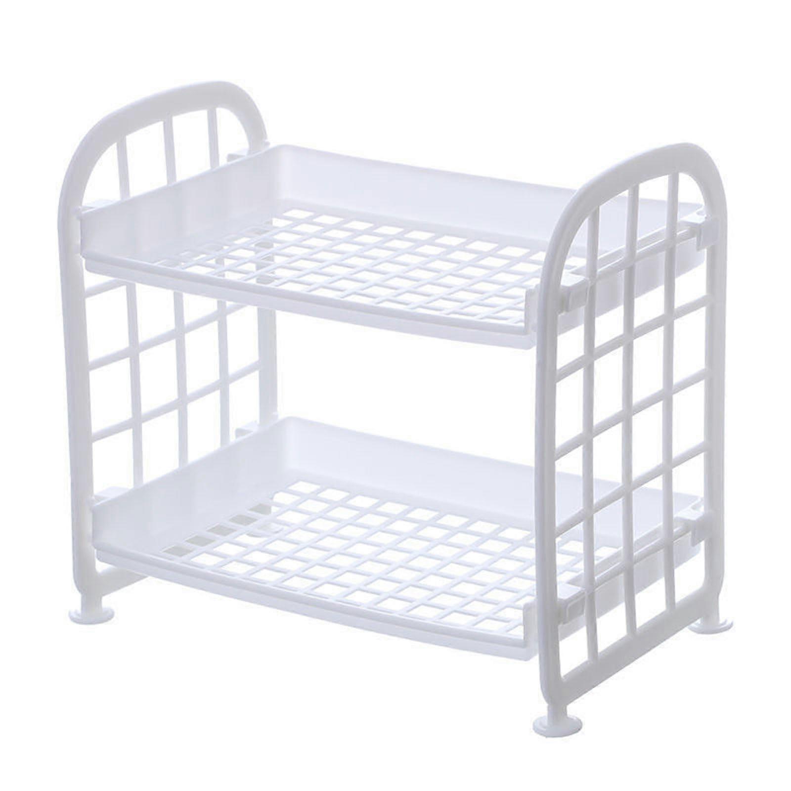 Shelves Plastic Storage Rack Double Layer Space Saving Countertop Rack For Kitchen Bathroom Desktop White
