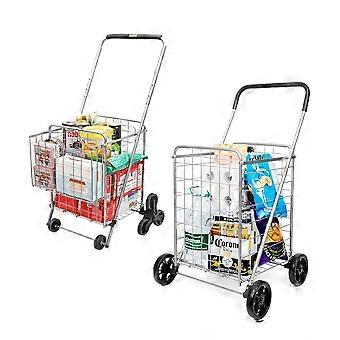 Foldable Shopping Trolley with Stair Climbing Wheels, Compact Grocery Cart for Outdoor/Silver