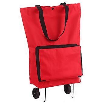 Folding Shopping Cart Lightweight Trolley Bag with Wheels Bold Red for Groceries Home Travel