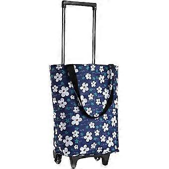 Foldable Shopping Bag with Wheels, Lightweight Blue Grocery Cart with Adjustable Handle, Single Layer