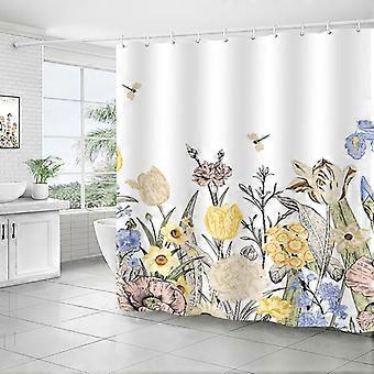 Shower Curtain Polyester 150x180 CM Machine Washable Quick-Dry Water-Repellent Weighted Hem Dragonfly Flower Pattern