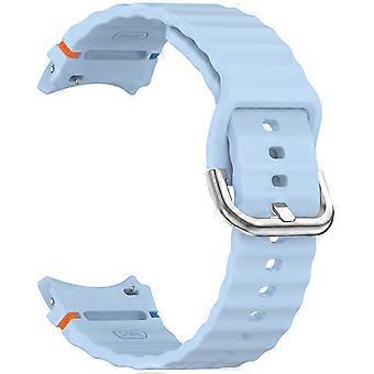 Silicone Watch Strap for Samsung Galaxy Watch 7/FE/6/6 classic/5/5 pro/4/4 classic Wave Model Car Line Silver Color Steel Buckle Strap (Light Blue)