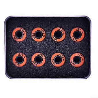 Simple upgrade for your ride, set of eight integrated spacers, skateboard bearings, model 608RS ABEC11 (orange)