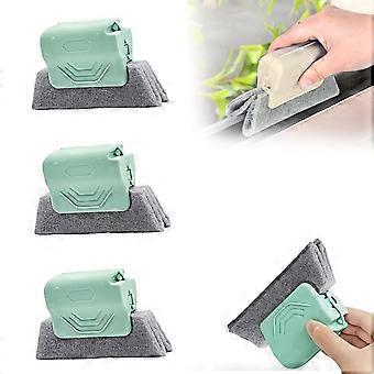 Window Track Cleaning Brush Set with Ergonomic NonSlip Grip and Washable Sponge for Slide Door (Green 3Pack)