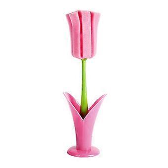 Bottle Cleaning Brush with Long Handle, Soft Sponge Cup Cleaner for Deep Cleaning Narrow Neck Glass Bottles Pink