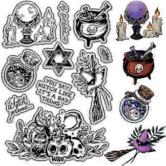 Skull Clear Stamps Magical Witch Magic Bottles Candles Word Reusable Retro Transparent Silicone Stamp Seals for Halloween Decor Journaling Card Making